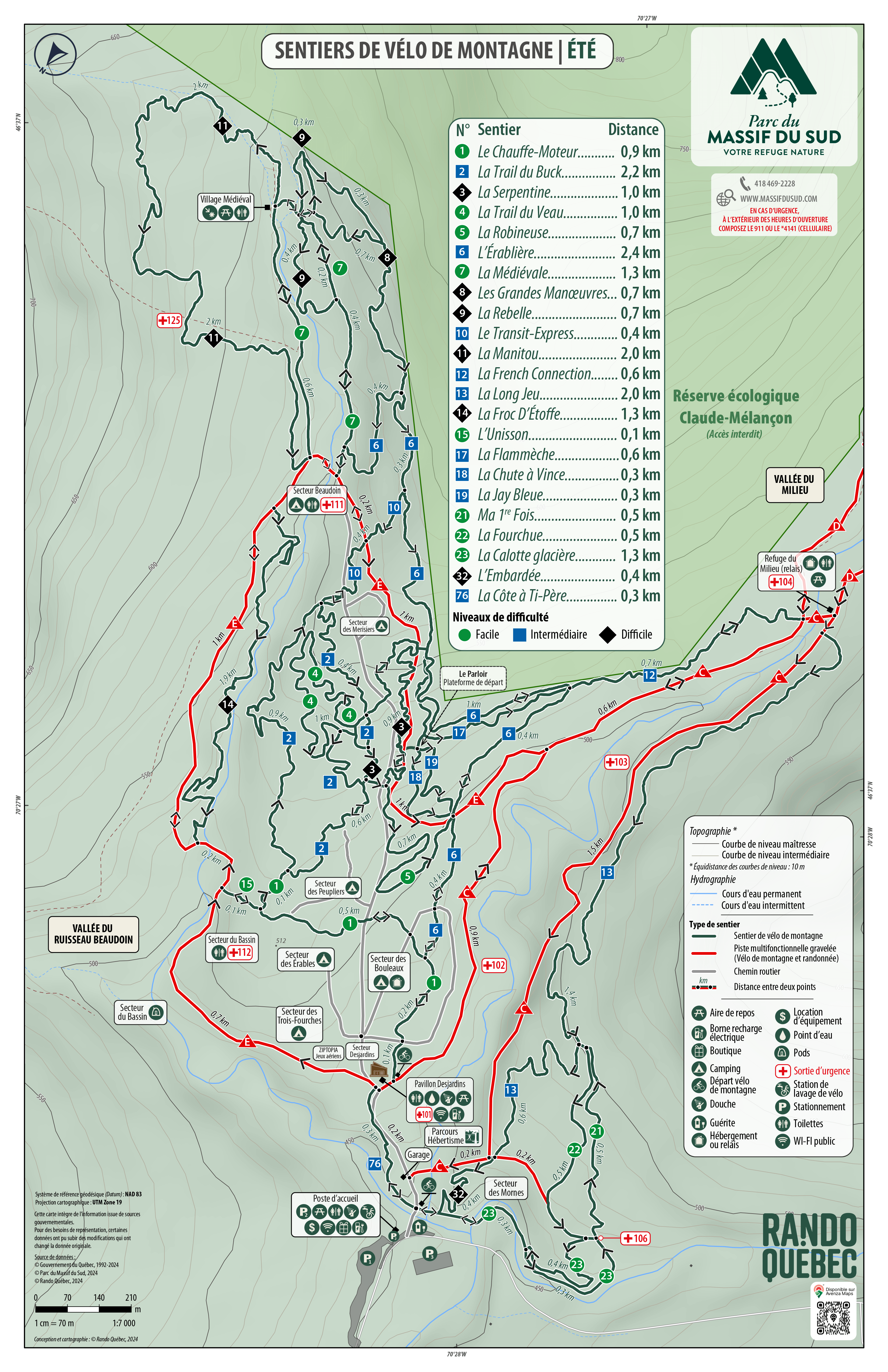 * Les sentiers la Froc d’étoffe et L’embardée s’adressent à des cyclistes plus aguerris.